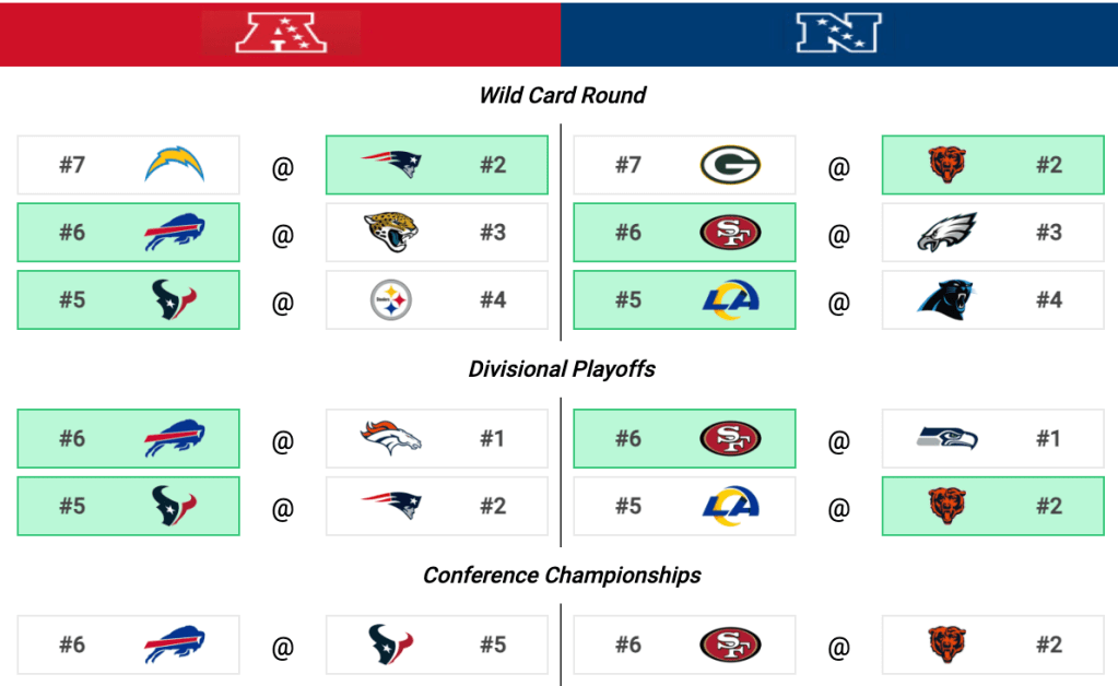 This season’s playoffs are off to a thrilling start last week there were 4 games that went down to the very last play! Even better, I predicted every single winner correctly, so let’s keep it rolling!